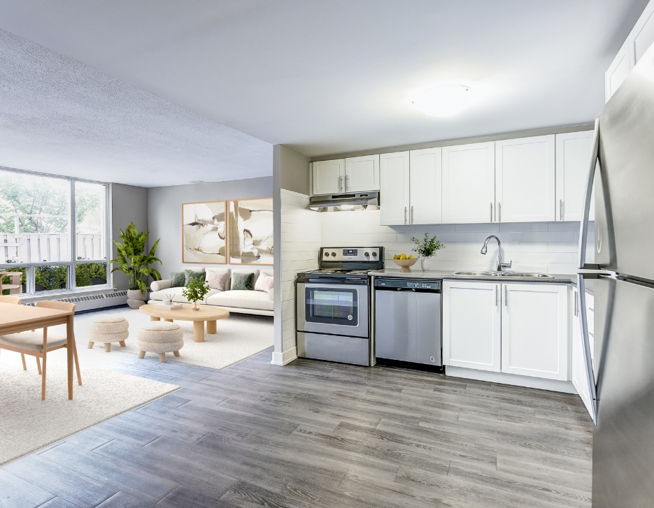 Renting an apartment at Richgrove Village means you get to enjoy everyday amenities to help you relax, including a large indoor pool, sauna, fitness centre, on-site laundry, spacious party room and resident lounge. In the courtyard, you'll find a children's playground with lots of trees, pretty gardens and benches to take it all in.